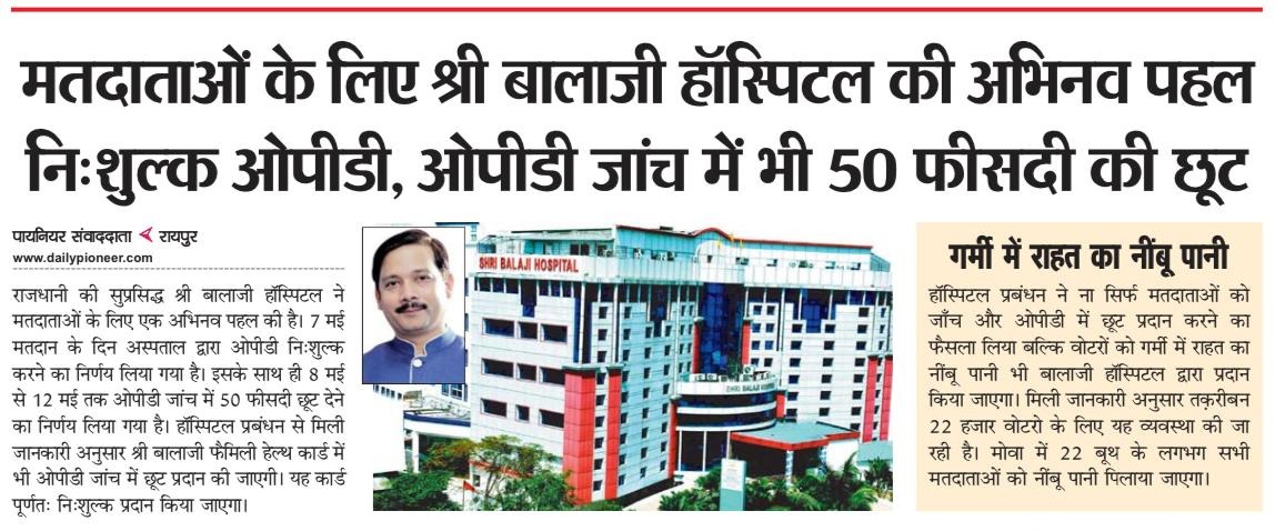 मंगलवार, 7 मई को मतदान के दिन हॉस्पिटल द्वारा ओपीडी नि:शुल्क करने का निर्णय लिया गया है।